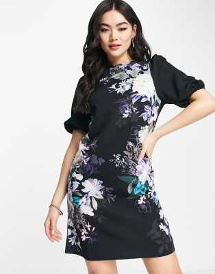 Lipsy London Kia Border Print Shift Dress Black Long Balloon Very well made.