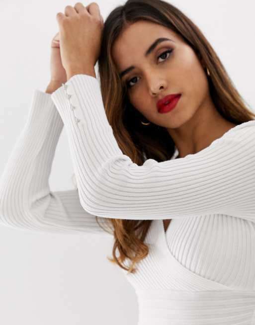Lipsy plunge neck knitted midi dress in white Very well made.