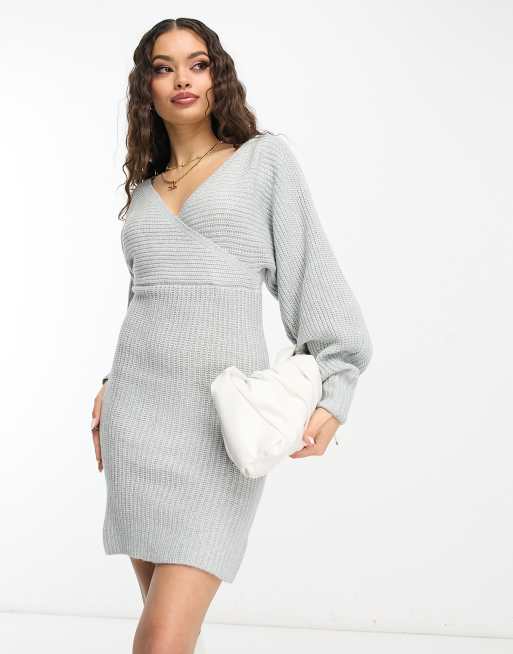 River Island Petite wrap knitted mini dress in light blue Very well made.