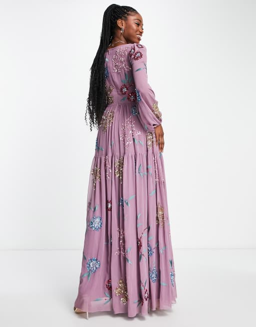 Maya floral embellished maxi dress in plum Very well made.