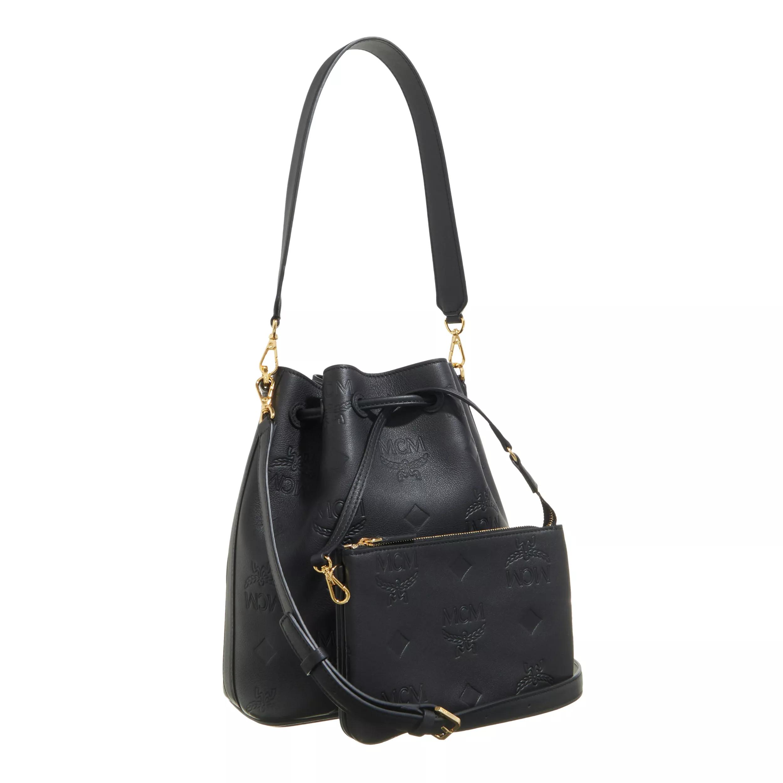 MCM Dessau Eb Mn Leather Drawstring Medium Black Bucket Bag Very well made.