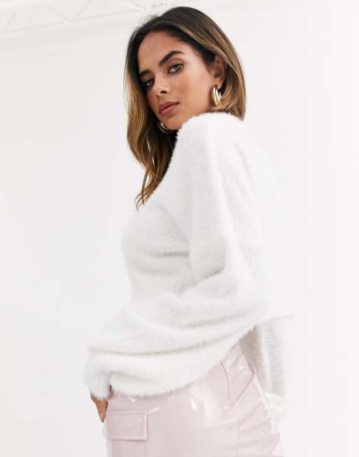 Missguided fluffy v neck stitch detail jumper in stone Very well made.