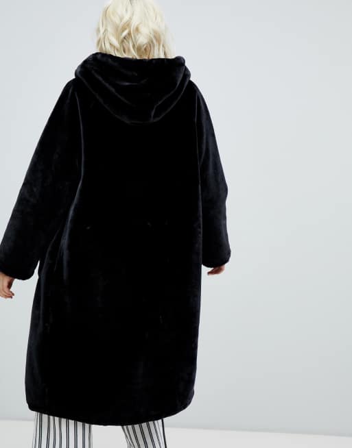 Monki faux fur zip hooded coat in brown Hinted Very well made.
