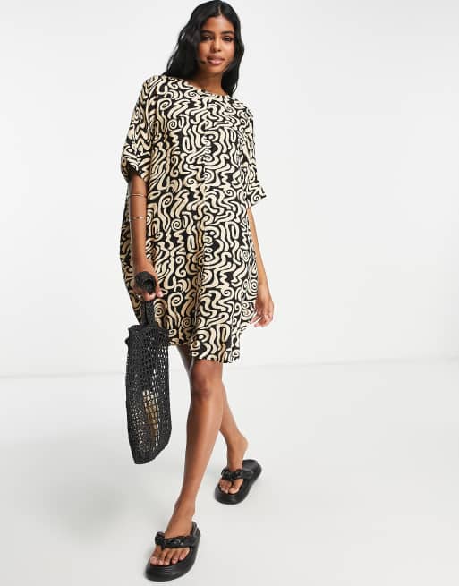 Monki oversized shirt dress in abstract swirl print Very well made.