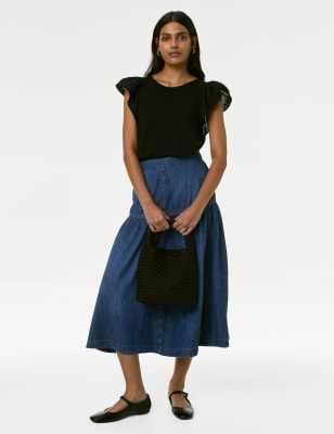 Denim Seam Detail Midi Tiered Skirt M S CA Very well made.