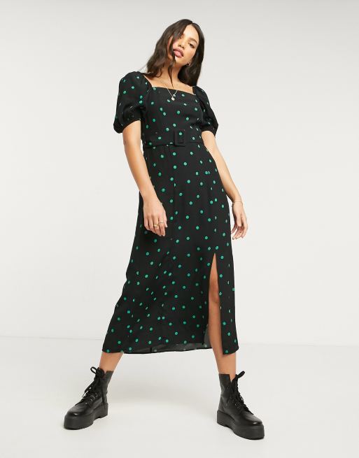 New Look Tall puff sleeve midi dress with square neck in mono polka dot Very well made.