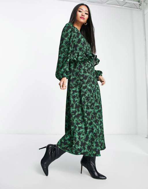 New Look Robe mi longue froiss e volants Vert fleuri Very well made.