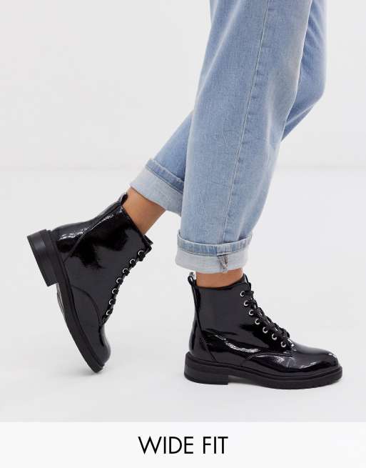 New Look Wide Fit buckle detail lace up flat boot in black ShopStyle Very well made.