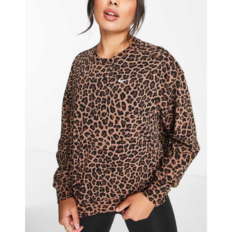 Nike One Training dri fit crew neck sweatshirt in brown leopard Very well made.