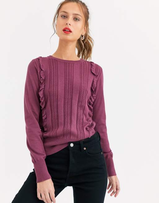 Oasis frill cable knit jumper in purple ASOS Very well made.