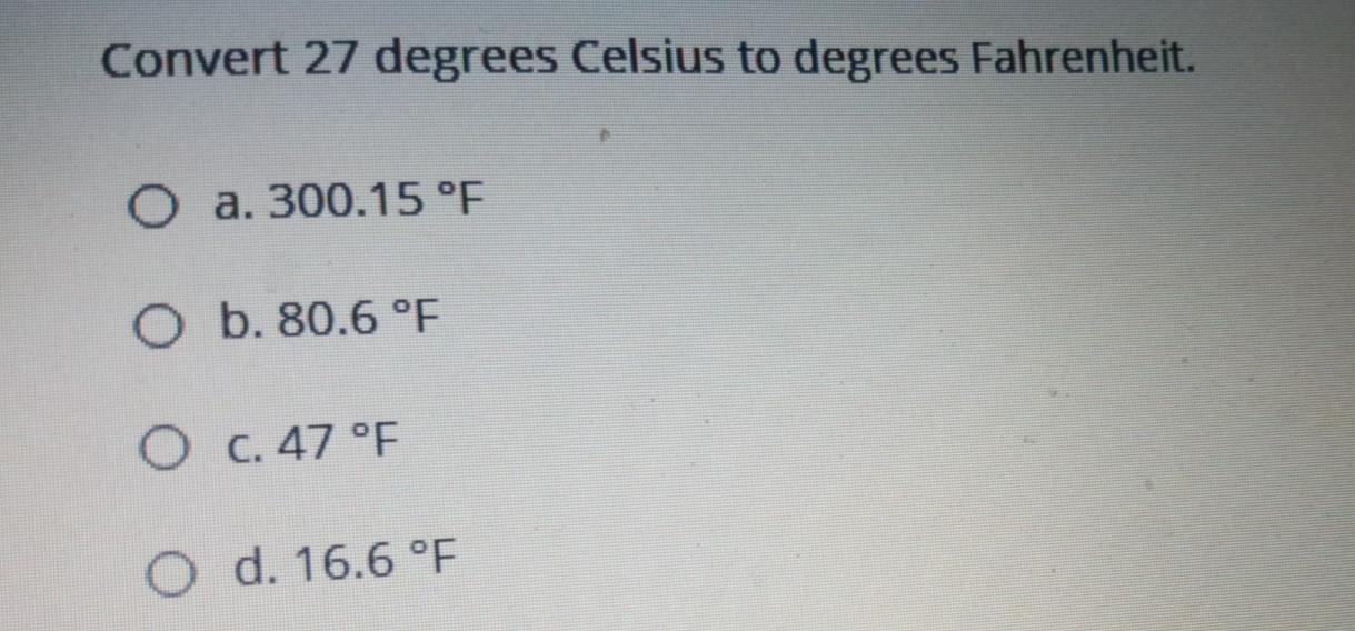 Solved Convert 27 degrees Celsius to degrees Fahrenheit. O Chegg Very well made.
