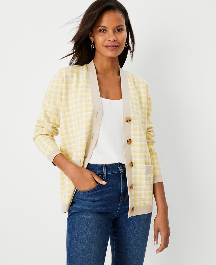 Petite Houndstooth Boyfriend Cardigan Very well made.