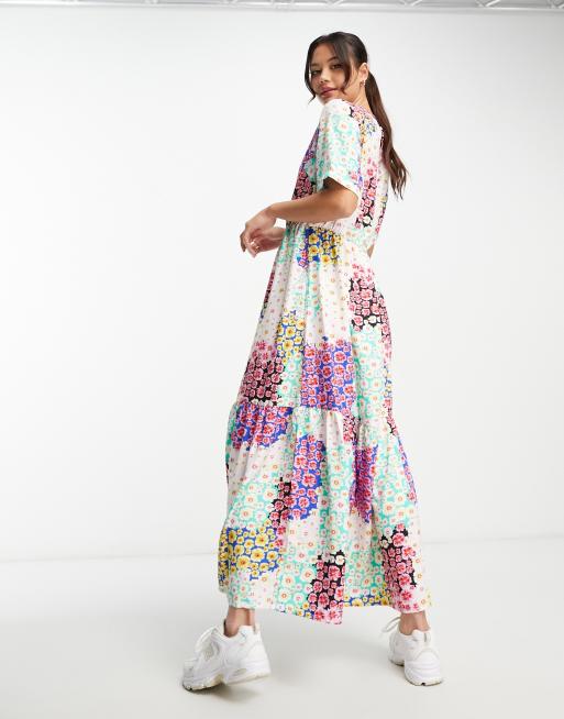 Pieces exclusive maxi dress in patchwork floral Very well made.