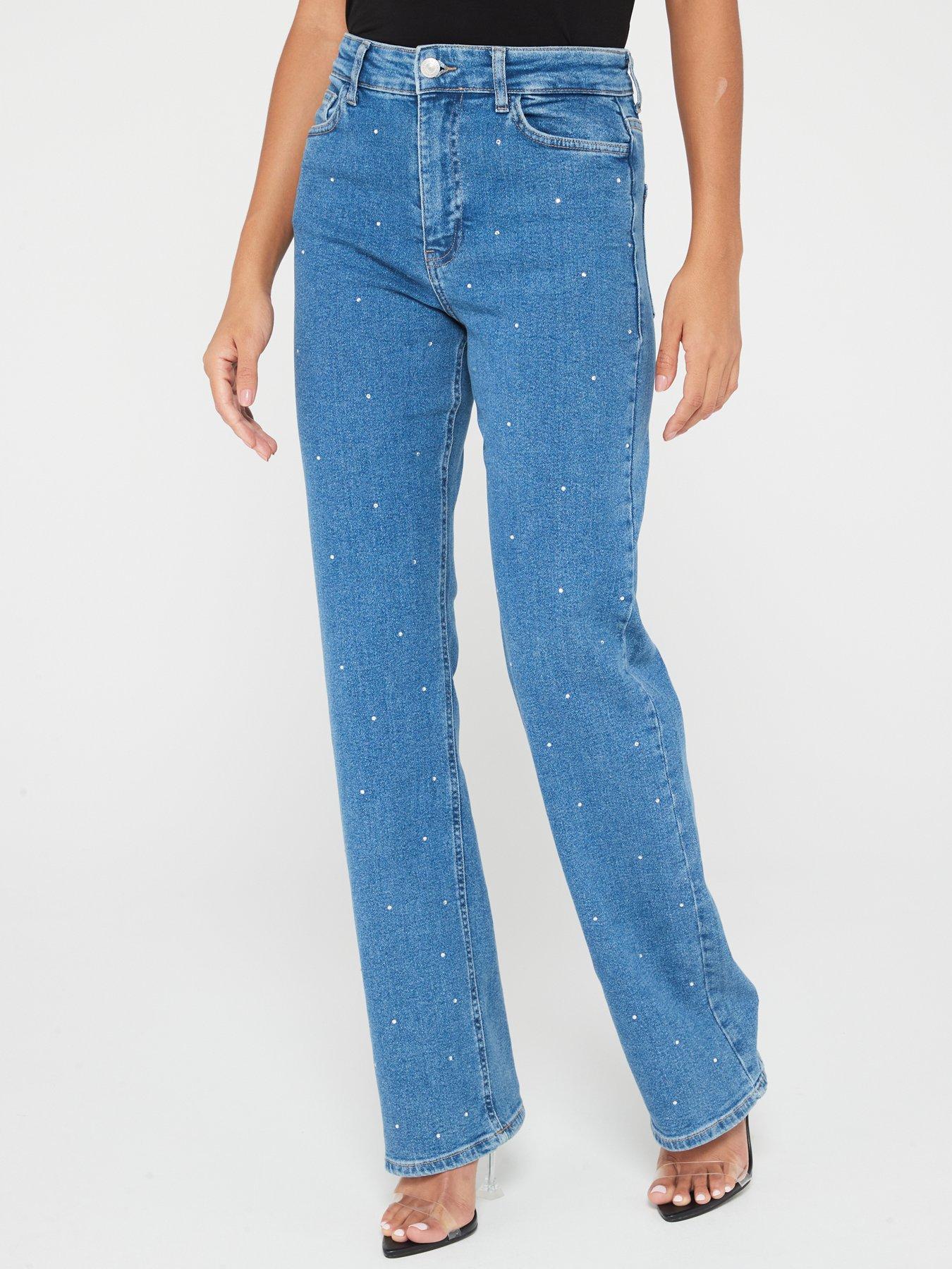 PIECES High Waist Wide Leg Rhinestone Jean Blue Very Ireland Very well made.