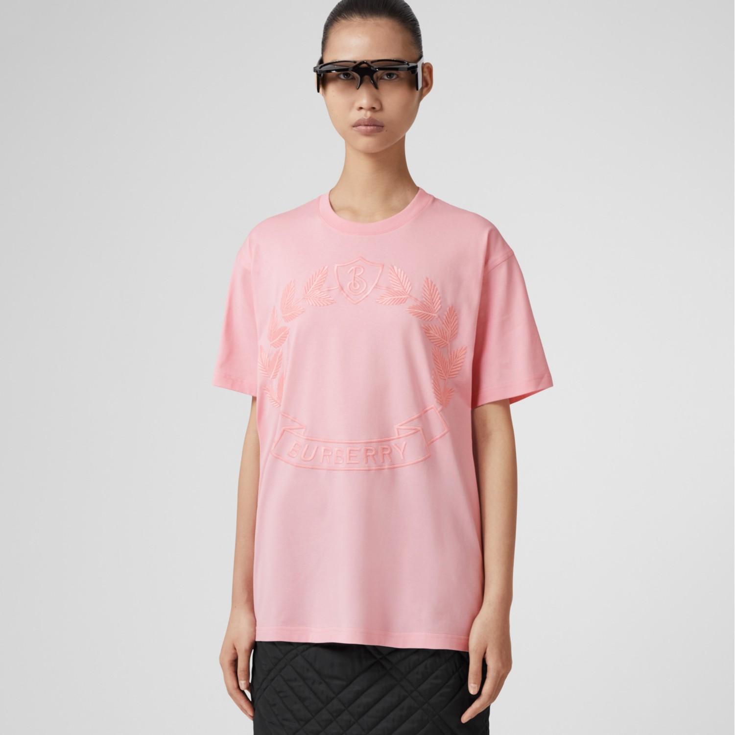 Oak Leaf Crest Cotton Oversized T shirt in Candy Pink Women Very well made.