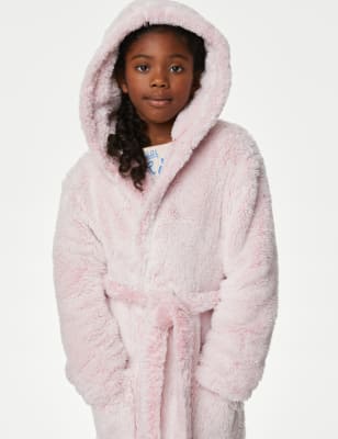 Girls Pink Fluffy Hooded Kids Dressing Gown Threadbare Very well made.