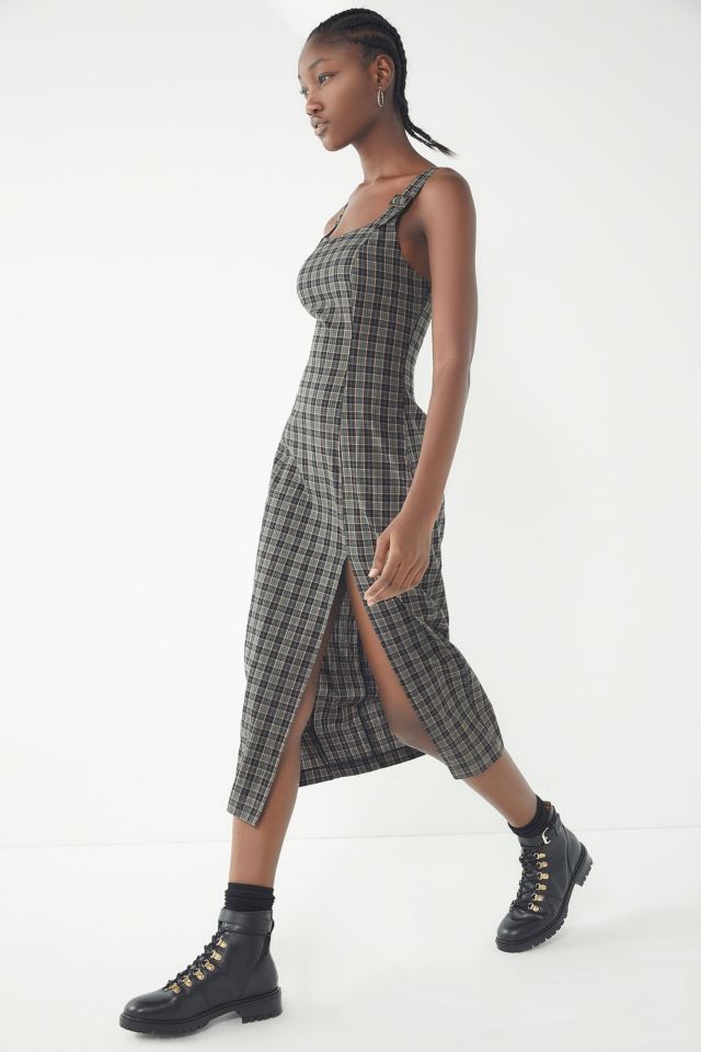 UO Charlotte Plaid Pinafore Midi Dress Urban Outfitters Very well made.