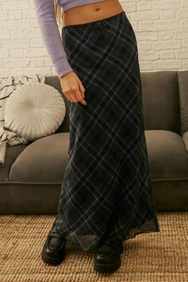 UO Navy Check Bias Cut Maxi Skirt Urban Outfitters Turkey Very well made.