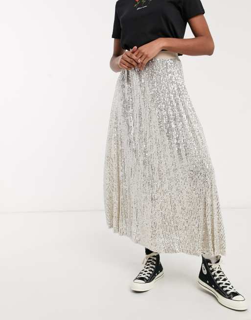 ASOS DESIGN sequin pleated midi skirt in silver ASOS Very well made.