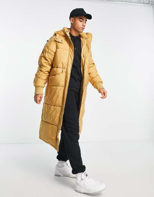 Chaqueta de plumas larga color mostaza t cnica de Urbancode ASOS Very well made.