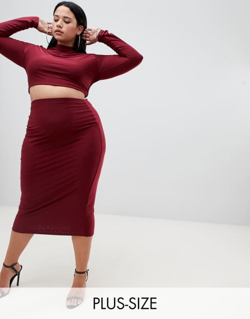 Fashionkilla Plus bodycon midi skirt Co ord in berry ASOS Very well made.