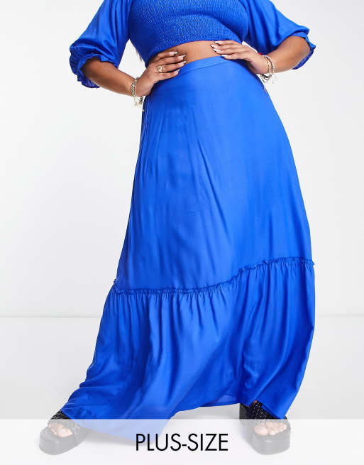 Esmee Plus Exclusive maxi skirt with gathered hem in cobalt blue Very well made.