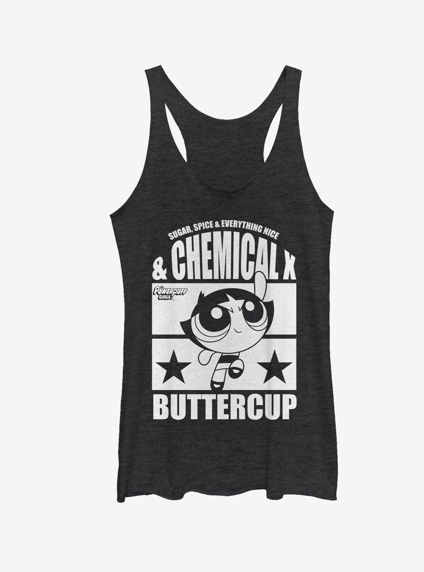 Women s The Powerpuff Girls Chemical X Blossom Racerback Tank Top Black Heather X Large Very well made.