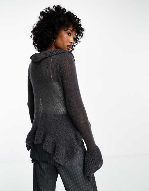 Motel ruffle edged cardigan in charcoal grey Very well made.