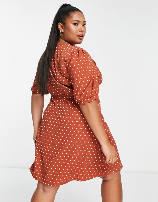 Cutie London Rust Spot Short Sleeve Split Hem Midi Dress New Look Very well made.