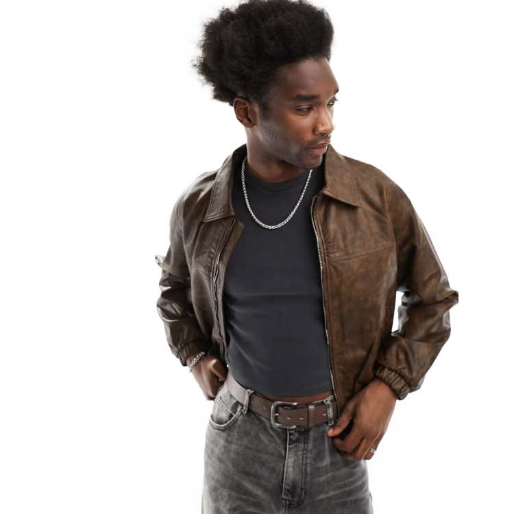 Bershka rustic bomber jacket in gunmetal brown Very well made.