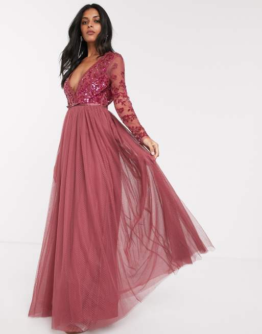 Needle Thread sequin bodice maxi dress in raspberry ASOS Very well made.