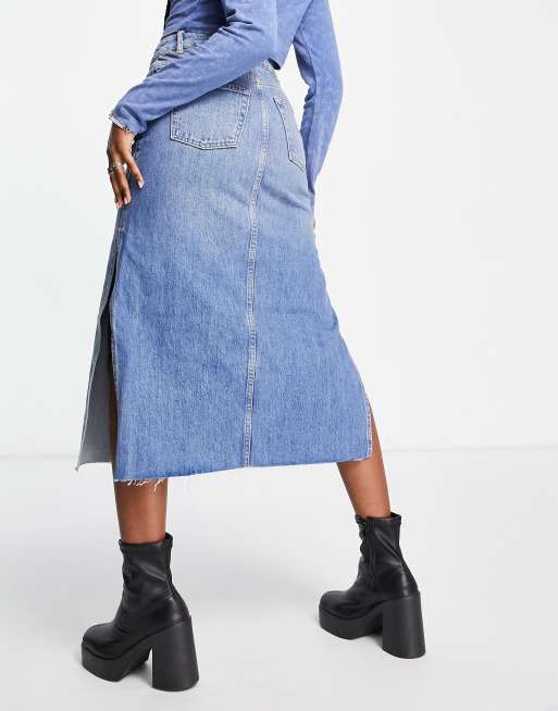 Topshop denim midi skirt with splits in mid blue ASOS Very well made.
