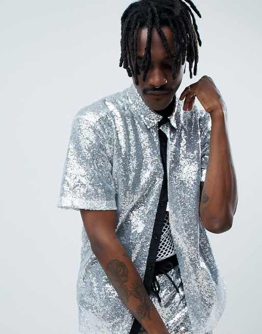 ASOS DESIGN regular fit silver sequin shirt ASOS Very well made.