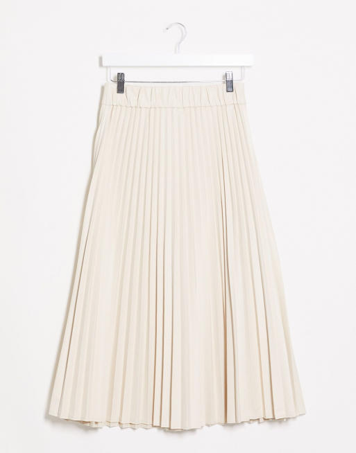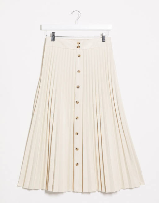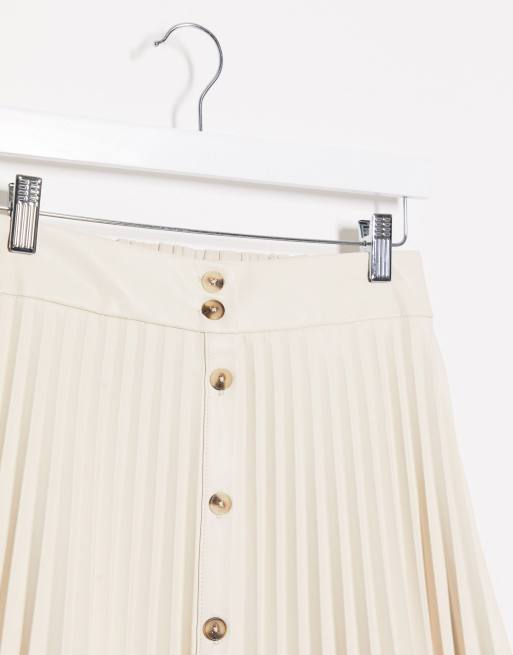 Stradivarius faux leather pleated skirt with front buttons in ecru Very well made.