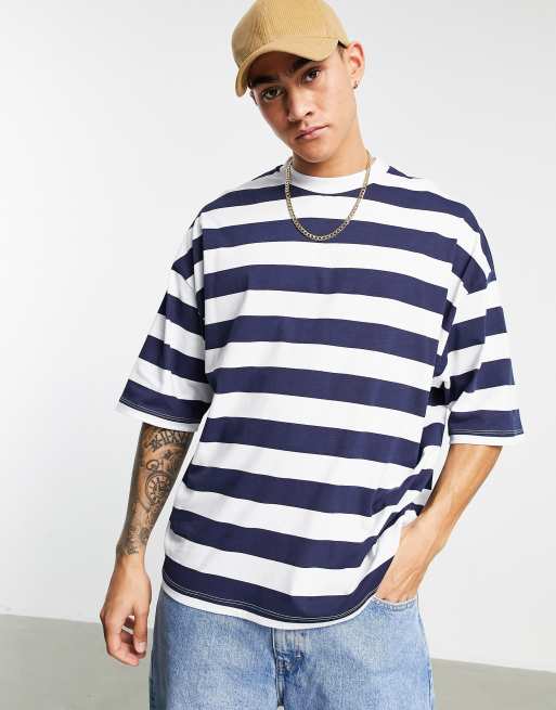 ASOS DESIGN oversized stripe T shirt in navy and white ASOS Very well made.