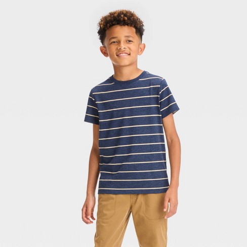 Boys Short Sleeve Striped T shirt Cat Jack Navy Blue Xs Target Very well made.