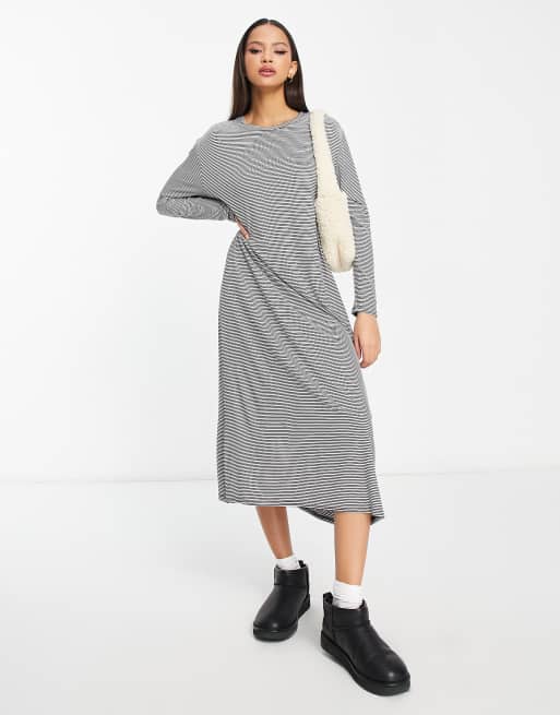 New Look striped long sleeved t shirt midi dress in black Very well made.
