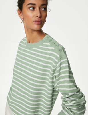 Cotton Rich Striped Crew Neck Sweatshirt M S AU Very well made.