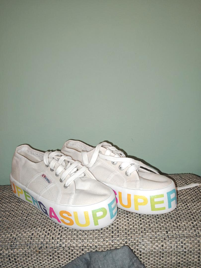 Scarpe Superga zeppa alta scritta colorata Abbigliamento e Very well made.