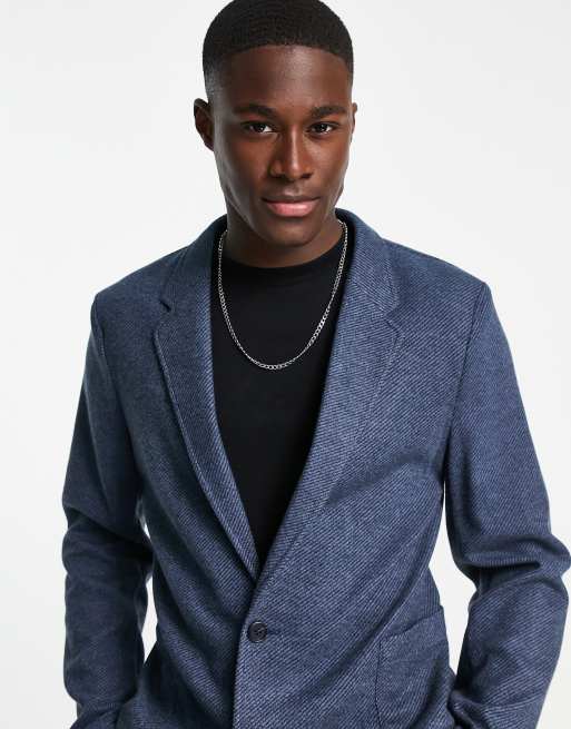 ASOS DESIGN slim soft tailored jersey suit jacket in navy wide Very well made.