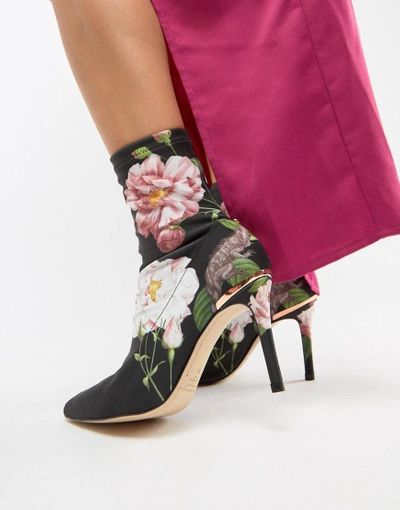 Floral Print Heeled Sock Boots Black Very well made.