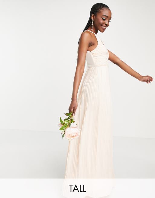 TFNC Tall bridesmaid pleated wrap detail maxi dress in light blush Very well made.