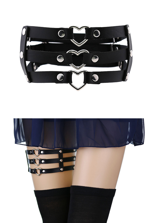 Gothic Punk Women Girls Fashion Faux Leather Stretchy Thigh Ring Sexy Three Row Heart Hollow Out Leg Harness Accessory Very well made.