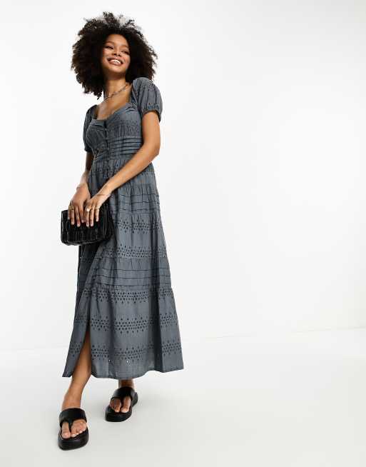 ASOS DESIGN eyelet button through tiered maxi tea dress in slate gray Very well made.