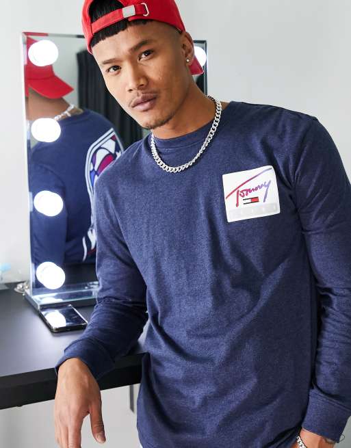 Tommy Jeans center flag logo long sleeve T shirt in navy Very well made.