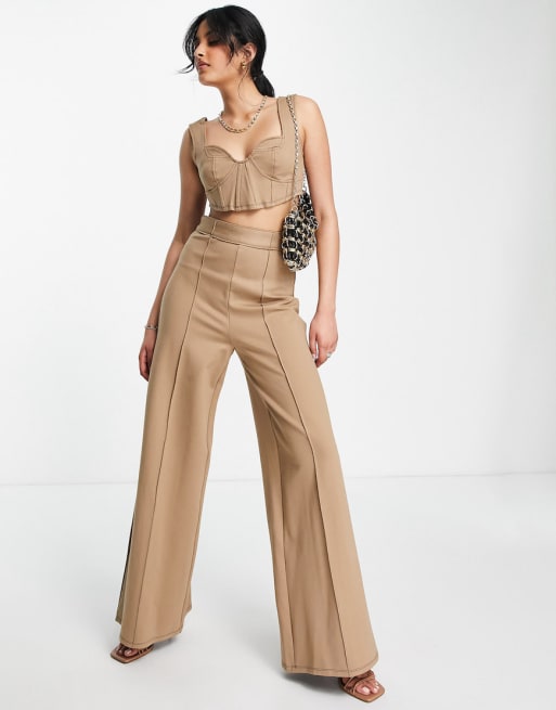 ASOS DESIGN corset crop top and pants set in tan structured ponte Very well made.