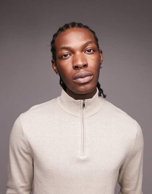 Topman essential knitted 1 4 zip sweater in stone Very well made.