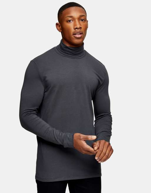 Topman waffle roll neck sweater in charcoal gray ShopStyle Very well made.