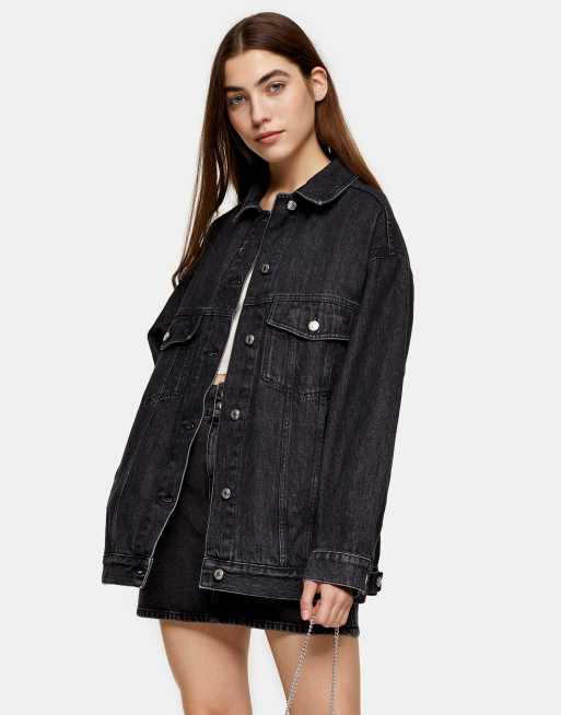 Topshop oversized dad recycled cotton denim jacket in washed black Very well made.