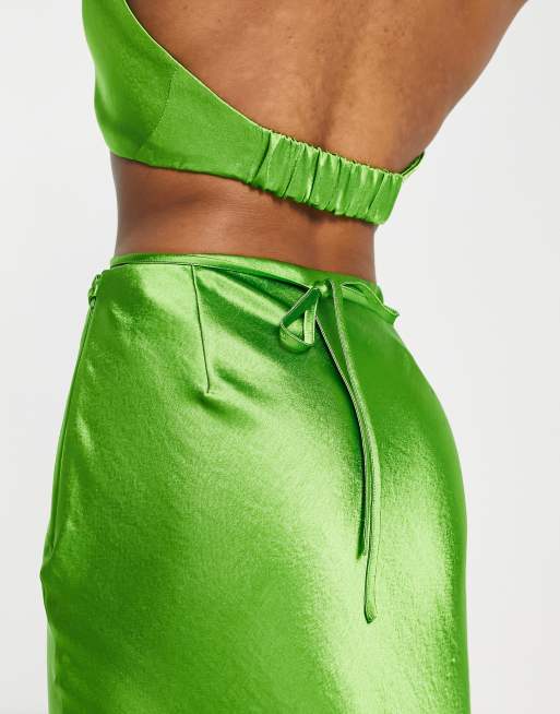 Topshop satin tie waist midi skirt in green part of a set Very well made.
